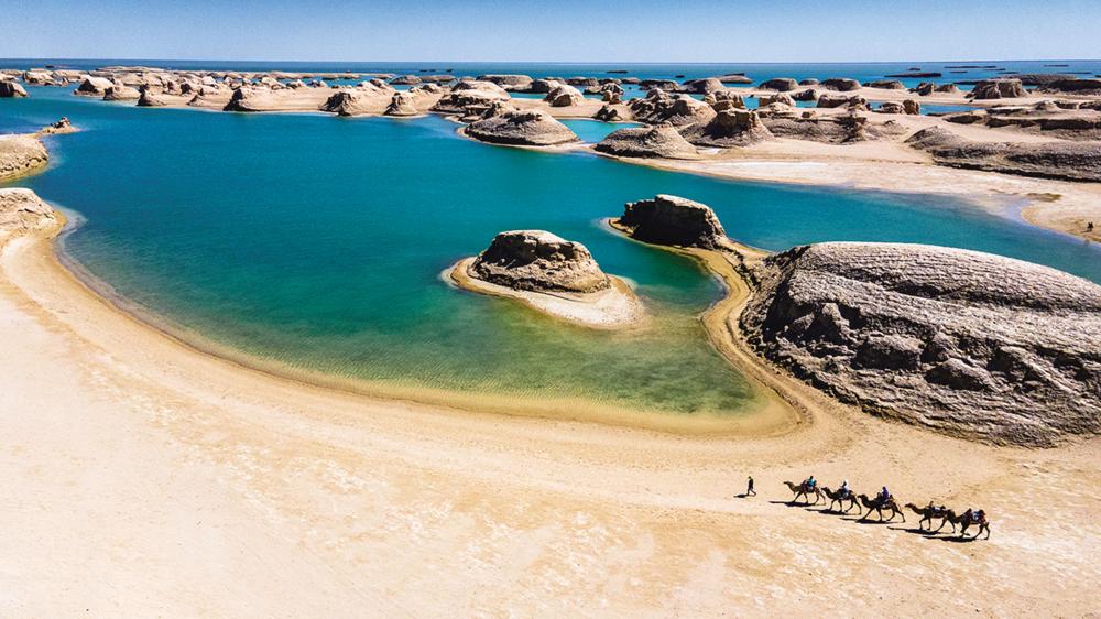 这里有云卷山野的草原与荒漠交界带,蓝天白云下,山峦如墨,草原翠绿如毯,远处的荒漠又添了几分苍凉雄浑,刚柔并济的景致勾勒出盆地的独特地貌;还有那澄澈如碧的湖水,或静谧如镜,倒映着远处的皑皑雪山,或因地质作用呈现出奇幻的蓝绿色,泛舟其上,仿佛闯入了人间仙境;更有水上雅丹的鬼斧神工,风与水的雕琢让土丘在水中矗立,或如巨兽蛰伏,或如城堡林立,当驼队缓缓走过沙丘时,历史的沧桑与自然的神奇在此刻交融;而雪山冰川的冷峻与荒漠峡谷的炽热,一冷一热间,尽显柴达木气候与地貌的极致之美。