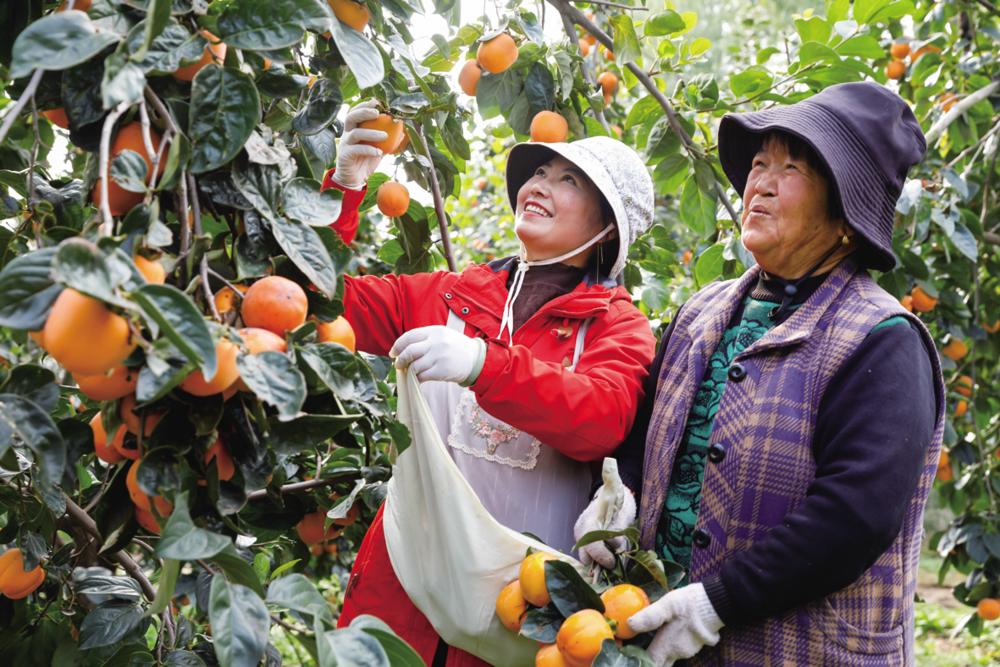 10月22日,农民在河南省武陟县大虹桥乡李马蓬柿子采摘园收获柿子。 新华社发(王琳锋 摄)