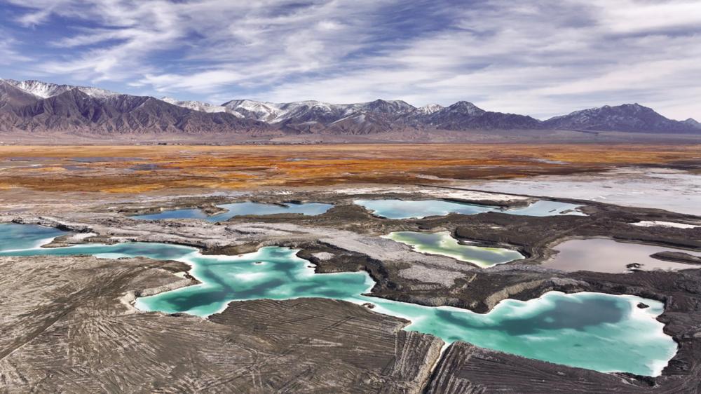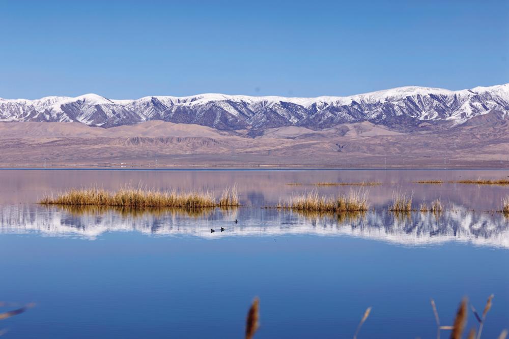 秋风漫过大柴旦的旷野,草原率先披上鎏金盛装,无垠草甸如大地铺开的金色绸缎。湿地深处藏着灵动的诗行,黑颈鹤舒展修长羽翼,掠过澄澈水面,红顶轻点碧波,翅尖划开的涟漪里,盛满了高原秋日的静谧。
