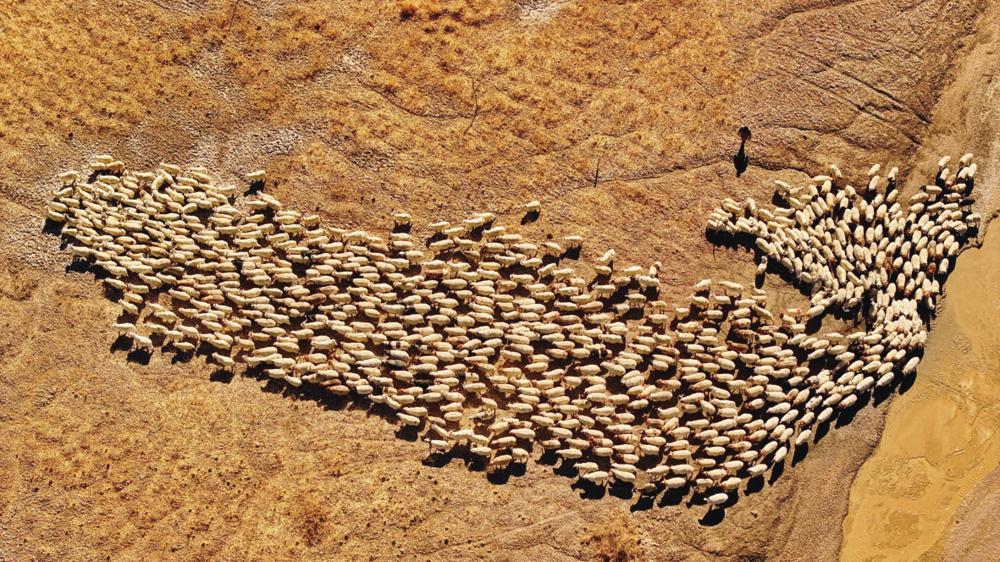 当日暮降临,整场秋日盛宴迎来高潮。夕阳倾泻而下,为远方山峦镀上璀璨金箔。日照金山的壮阔景观与湖光、草原、羊群相映,每一帧都是自然亲手绘制的绝美画卷。本报记者 张萍 摄影报道