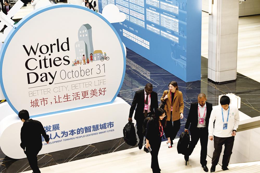 10月26日,与会嘉宾步入2025世界城市日城市可持续发展全球大会全体大会现场。 10月26日,2025世界城市日城市可持续发展全球大会在上海世界会客厅开幕,本届大会主题为“创新发展,共建以人为本的智慧城市”。 新华社记者 方喆 摄