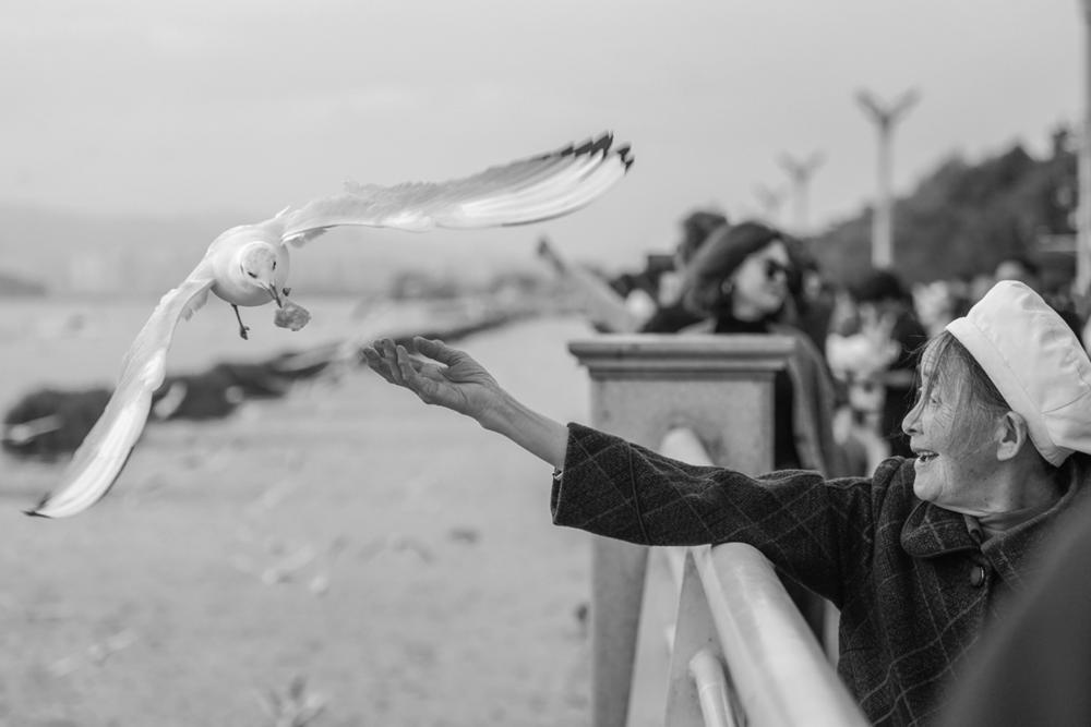 11月1日,游客在滇池畔的海埂大坝喂鸥。 近日,红嘴鸥如往年一样从西伯利亚等地飞抵云南昆明,成为“春城”一道灵动的风景,吸引市民与游客前往观赏、互动。 这场年复一年的“约定”,始于1985年冬天红嘴鸥第一次大规模迁徙至昆明越冬,这份人鸥情迄今已四十载。 新华社记者 彭奕凯 摄
