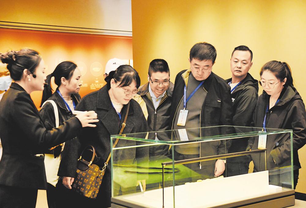 一位游客在展柜前驻足良久,指尖轻触互动屏时,鎏金王冠的纹路在光影中流转。“三维呈现太震撼了!”他指着屏幕感叹,“还有墓葬结构动画和文物细节视频,即使没预约到讲解,也能看清每道金丝、每粒宝石的匠心。”他的目光在展柜与影像间游移,瞳孔里跳动着对千年文明的惊叹与探索的渴望。
