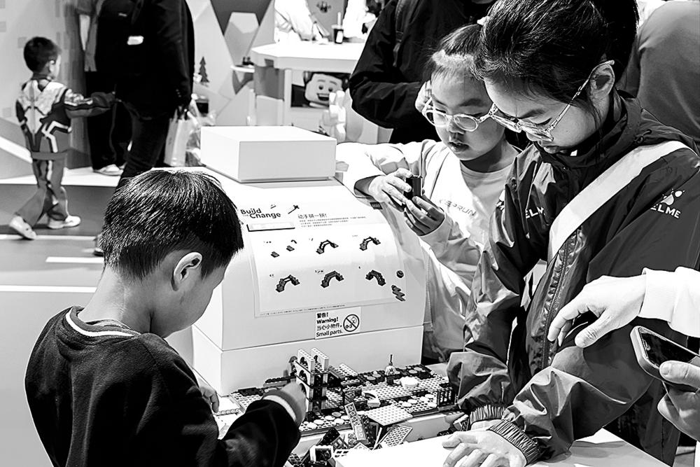 11月8日,在第八届进博会消费品展区,儿童在乐高展台动手体验积木。 第八届中国国际进口博览会消费品展区以“更高品质、更好生活”为主题。展区内服饰、日化、家居、文体等消费品集中亮相,纷呈的新意与匠心,为“更好生活”写下生动注脚,也为全球消费趋势与生活品质升级提供了直观的洞察窗口。 新华社记者 刘佳琪 摄