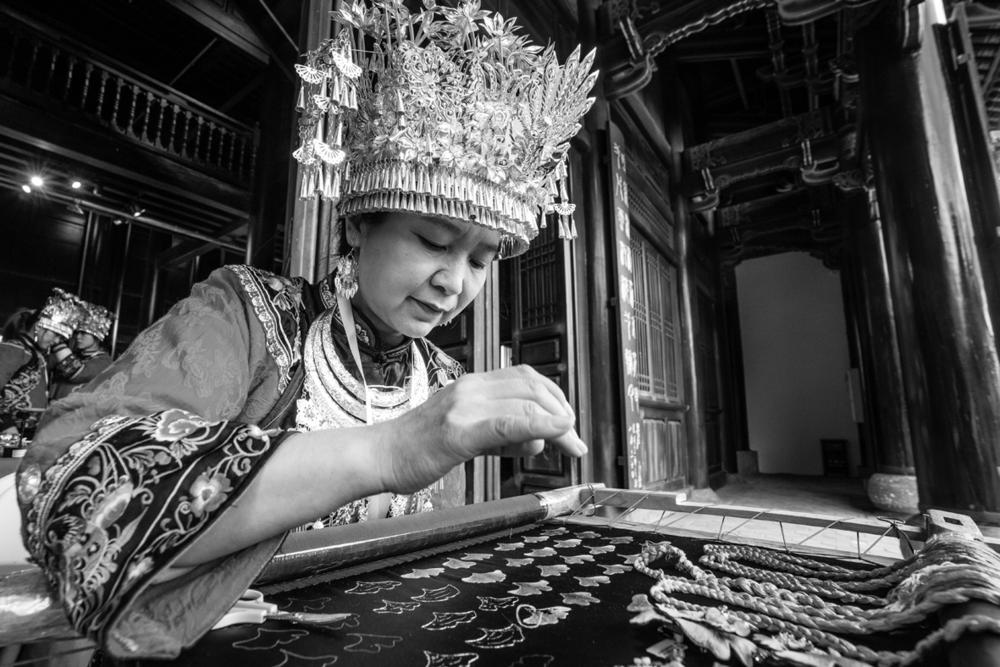 11月23日,重庆酉州苗绣市级传承人陈国桃在2025非遗品牌推广周上刺绣。 11月23日,2025非遗品牌推广周启动仪式在云南省大理市举行。本次推广周集中展示了来自全国各地富有特色、具有较高知名度和影响力的120余家非遗品牌。新华社记者 胡超 摄