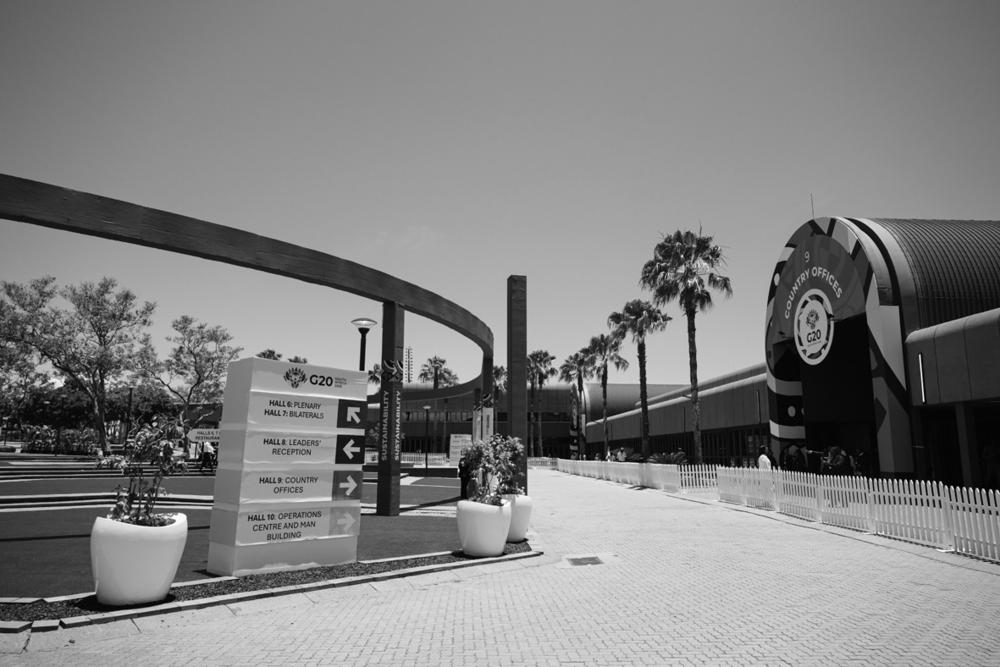 这是11月22日在南非约翰内斯堡拍摄的二十国集团领导人第二十次峰会会场外景。 二十国集团(G20)领导人第二十次峰会22日在南非约翰内斯堡开幕,会议当天通过了《二十国集团领导人约翰内斯堡峰会宣言》。新华社记者 杨光 摄