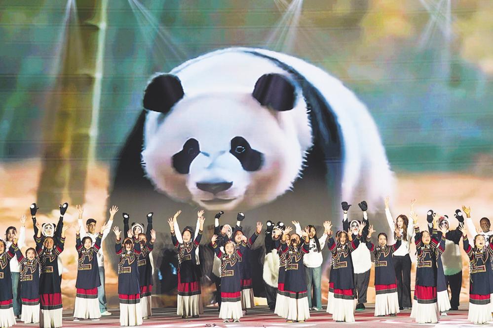 近日,来自大凉山的妞妞合唱团和外国留学生代表在2025全球熊猫伙伴大会开幕式上演唱大会主题曲。新华社记者 胥冰洁 摄