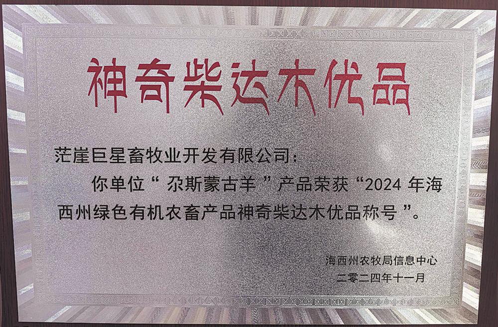 公司先后获得“海西州龙头企业”称号,2020年获青海省绿色有机农畜产品“百佳优品”荣誉称号。