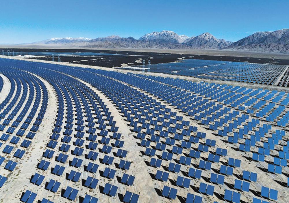 ↑青海省海西州德令哈市光伏(光热)产业园的光热电站。 新华每日电讯记者 张龙 摄