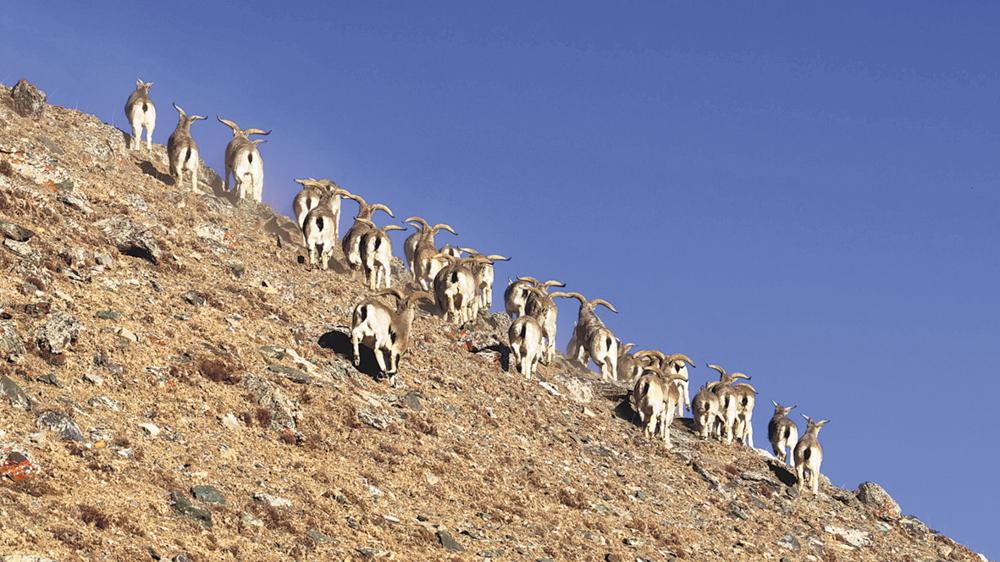 近日,记者在德令哈市柏树山山区拍摄时看到,岩羊活动密集,公羊矫健引领、母羊温顺觅食,最引人注目的是幼崽数量较往年大幅增多,几乎每群都有多只毛茸茸的小羊羔紧随母羊,种群规模壮大。 近年来,海西州持续推进生态保护与修复工程,通过天然林保护、草原生态修复等举措,柏树山植被覆盖率显著提升、生态环境持续优化。良好的栖息环境为国家二级保护动物岩羊提供了充足食物与安全空间,不仅使种群规模不断壮大,更让幼崽存活率大幅提高,成为当地生态保护成效的直观见证。 本报记者 青普力 都尔斯雷 摄影报道