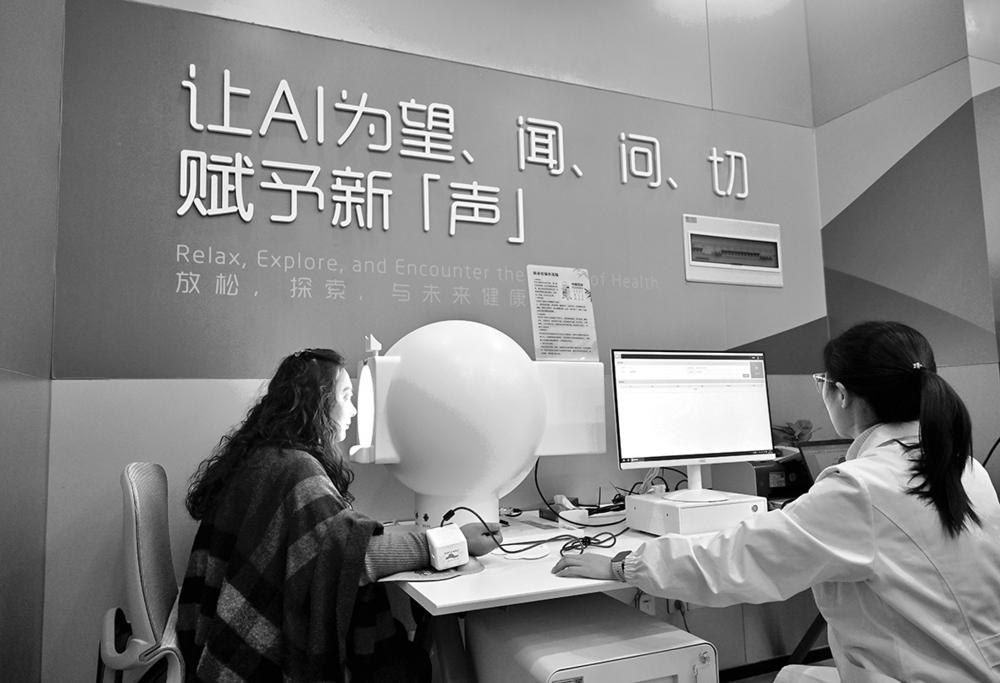 12月4日,在“AI·镜界—南京人工智能生态街区”,一位女士在“AI诊所”进行健康检测。 近年来,江苏南京依托中国(南京)软件谷的软件产业基础,规划、建设“AI·镜界—南京人工智能生态街区”,目前已建成10个专业园区、100万平方米产业载体,集聚华为、中兴、希音、亚马逊等企业381家,从业人员超5万人,按照“一环两轴三核四片区”空间布局,打造南京人工智能产业地标和创新高地。 新华社记者 季春鹏 摄