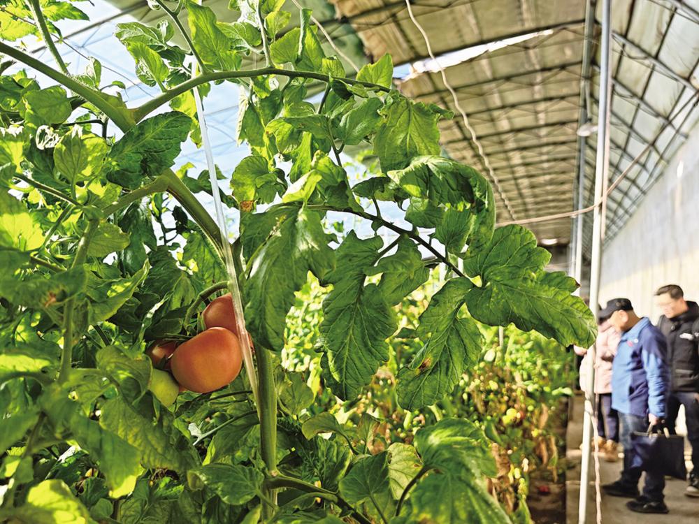 走进村里的智慧温室大棚,绿意盎然,西红柿、茄子迎来采摘季。农技人员用手机操作APP,为温室大棚卷帘、补光,实现一键切换。一处温室大棚内,农户正加工平菇菌棒,发展食用菌产业。