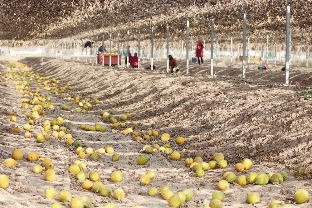 12月7日,在连云港市灌云县杨集镇利华村,村民收获成熟的瓜蒌。新华社发(吴正祥 摄)