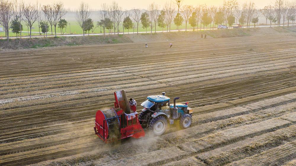 12月6日,在河南省商丘市睢县河集乡吴楼村一处中药材种植基地,农户采收白术。新华社发(徐泽源 摄)
