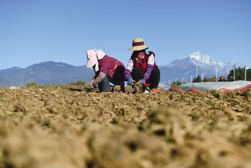 12月7日,农民在云南省丽江市玉龙县黄山街道的一处空地分拣、晾晒中药材当归。新华社发(赵庆祖 摄)