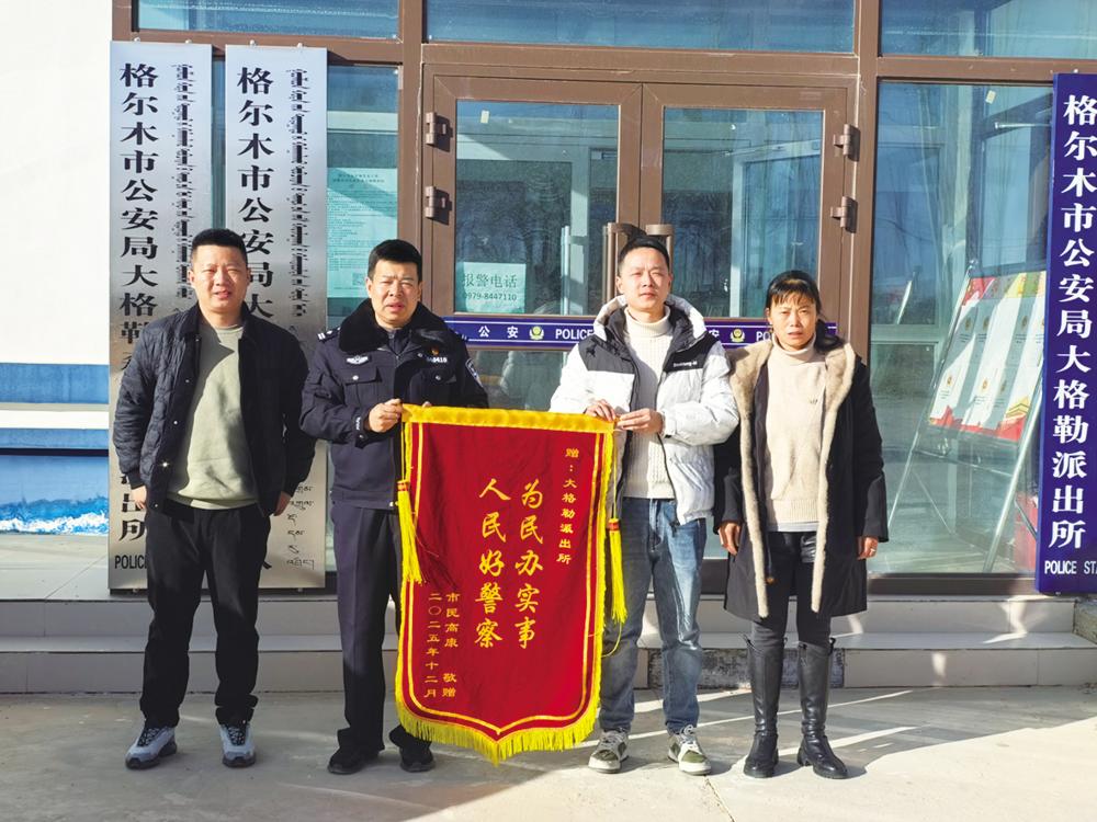 一面锦旗,承载着群众的真挚谢意;一句赞誉,凝聚着警民的鱼水深情。12月3日,四川省雅安市群众高先生来到格尔木市公安局大格勒派出所,手捧印着“为民办实事 人民好警察”的鲜红锦旗,紧紧握住民警的手再三道谢:“多亏了你们耐心调解,我父亲的赔偿问题才顺利解决,真是人民的好警察!”