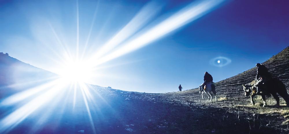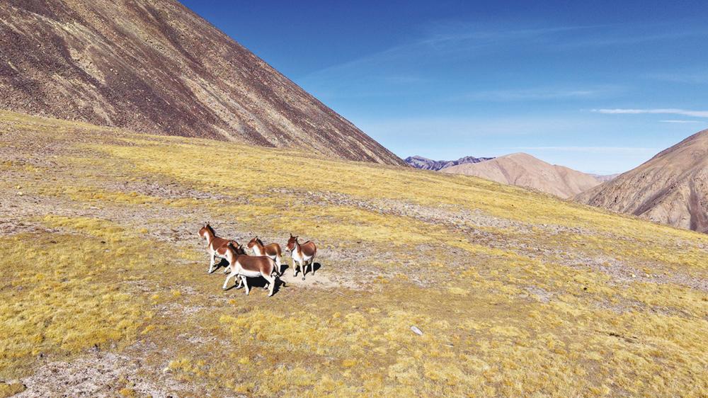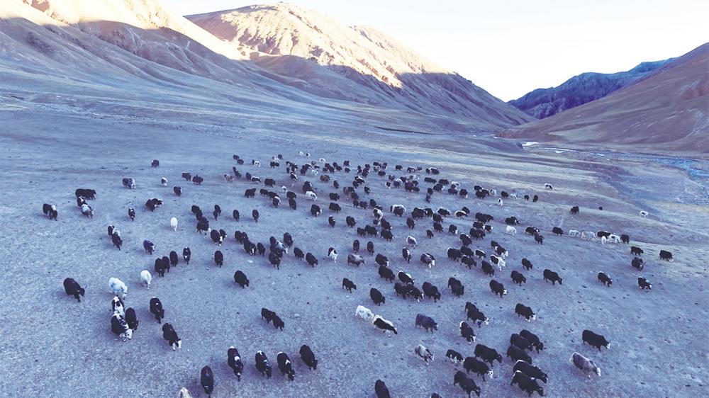 极目远眺,一幅动人的画卷徐徐铺展:成群的野驴与牧民的羊群不疾不徐地交错而过,蹄声轻响,与风穿过牧草的簌簌声交织。雪豹的低沉咆哮声隐约回荡在山谷,远处传来牧人悠长的歌谣,两种声音遥遥相和,谱写出人与自然双向奔赴的最美和弦。