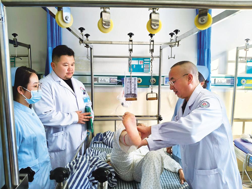 为让牧区百姓“大病不出州”,团队还将优质医疗服务主动延伸至基层。通过远程会诊、下沉指导等方式,协助基层医院完成45例复杂骨折手术,把诊疗保障送到了群众家门口。韩玉文至今难忘2025年接诊的一位95岁高龄患者,老人因摔伤导致股骨粗隆间骨折,这类病症死亡率极高。急诊入院后,科室立即启动多学科协作预案,骨科、麻醉科、心内科等科室联合评估诊疗,最终采用PFNA髓内钉行闭合复位内固定术,以微创、快速的手术方式为老人争取了康复机会。