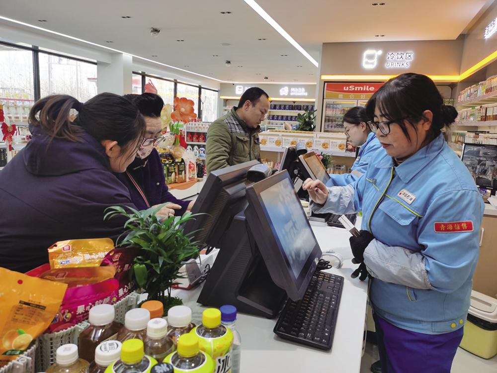 “今天人气特别旺!政府消费券就像‘新年红包’,大家用来采购生鲜食品、礼品等。销量比平时周末增长了近20%,这为整个春节档期开了个好头。我们已经全力备货,迎接接下来的年货采购高峰。”德令哈乐生活超市负责人王惠龙说。