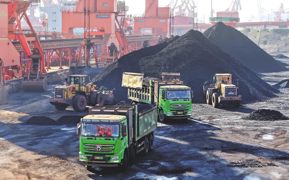 1月5日,在青岛港前湾港区86泊位,工程车辆在进行煤炭转运作业(无人机照片)。 1月5日,山东港口青岛港完成2026年首船4.4万吨保供电煤接卸转运任务,实现电煤接卸作业“开门红”。作为北方电煤重要枢纽港之一,青岛港聚焦保供核心需求,科学调配、优化流程,实现电煤快卸快转,持续为区域电力安全和供暖稳定提供保障。 新华社记者 李紫恒 摄