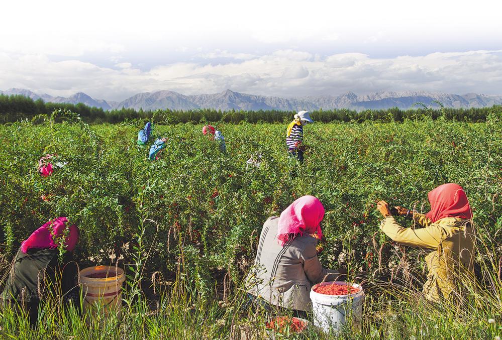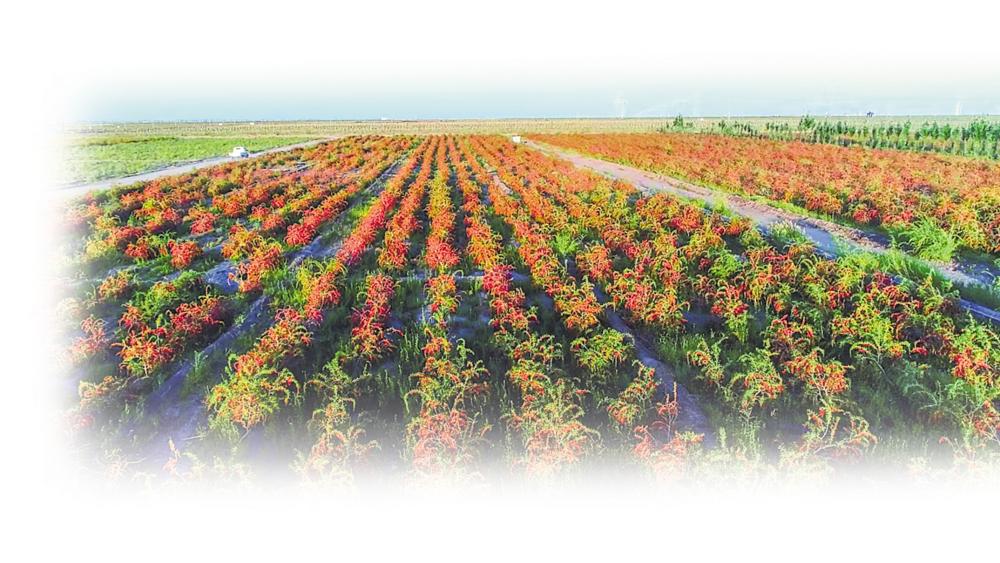昆仑山下,明媚的晨光裹挟着柴达木的凛冽气息,漫过如海洋般连绵起伏的枸杞林。每逢收获时节,一串串鲜艳的枸杞缀满枝头,在高原炽烈的阳光下,翻涌成火红的波浪。