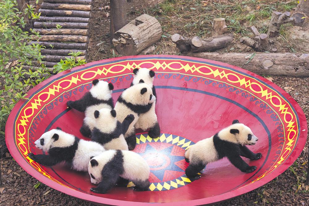 在成都大熊猫繁育研究基地,2025级新生大熊猫幼崽亮相新春主题活动(2月4日摄)。 近日,大熊猫国家保护研究中心举办“马上见国宝”新春主题活动,中国大熊猫保护研究中心和成都大熊猫繁育研究基地的30只2025级新生熊猫宝宝亮相,为大家送上新春祝福。据悉,2025年两大机构共成功繁育45只大熊猫。 新华社记者 胥冰洁 摄