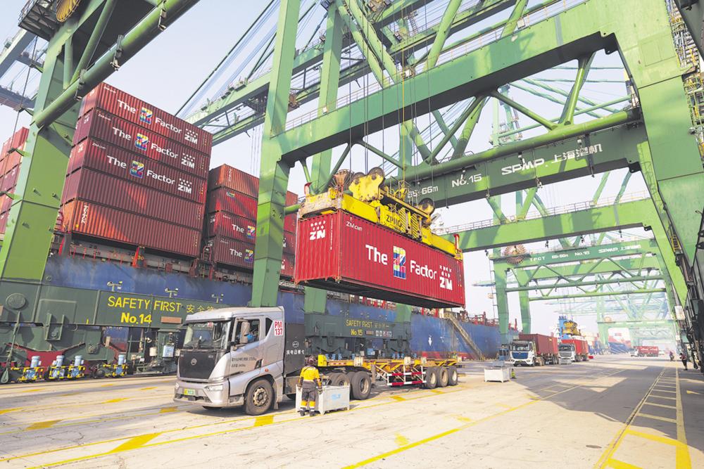 2月11日,载有生鲜产品的冷链集装箱在天津港进行卸船作业。 春节前夕,车厘子、黑虎虾、香蕉等各类海外生鲜,通过冷链物流持续运抵天津口岸。为保障生鲜产品高效通关,天津东疆边检站开通“绿色通道”,实现船员手续靠泊即办。天津东疆海关依托口岸智慧管控系统,在船舶抵港前即完成申报、审单等流程,大幅压缩整体通关时间,确保海外生鲜产品能够第一时间配送至各地商超,满足节日市场消费需求。 新华社记者 孙凡越 摄