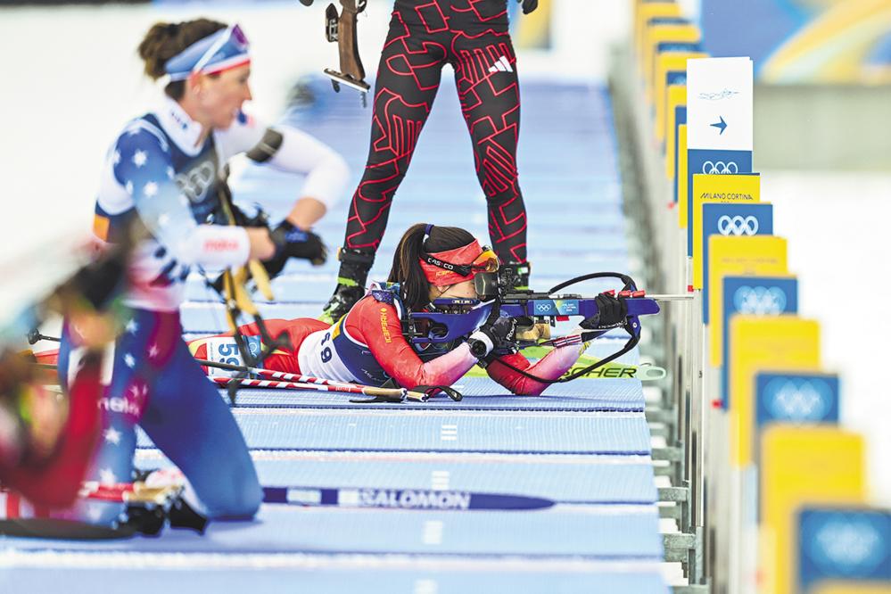 ↑2月11日,中国选手孟繁棋在比赛中。她获得第26名。 当地时间2月11日,米兰—科尔蒂纳冬奥会冬季两项女子15公里个人赛在意大利安泰塞尔瓦举行。 新华社记者 江汉 摄