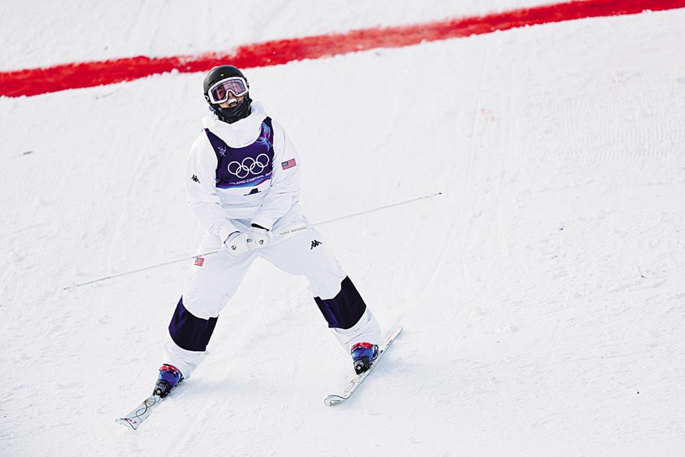 ← 2月11日,美国选手伊丽莎白·莱姆利在比赛中。她获得冠军。 当地时间2月11日,米兰—科尔蒂纳冬奥会自由式滑雪女子雪上技巧决赛在意大利利维尼奥举行。 新华社记者 王鹏 摄
