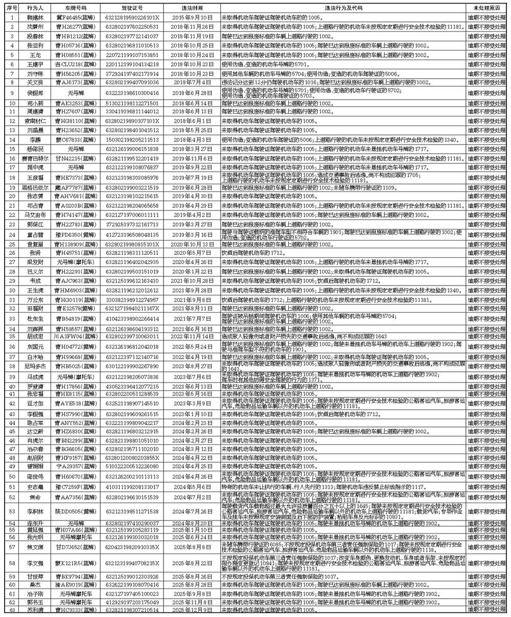 德令哈市公安局交通管理大队逾期不接受处理的机动车驾驶人明细表