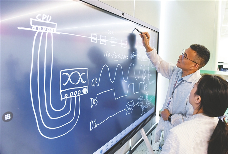 举例来说,在超高带宽下采集信号难度很大,就像“用漏勺接瀑布”,稍有不稳就难以“滤出”关键数据。无数次算法优化,提升“标刻”效率,最终实现信号采集处理性能、测试效率的全面升级和多代产品跨越。