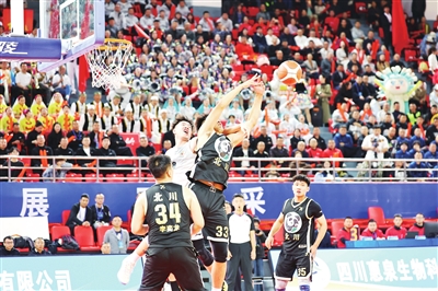 谊网天下队(北川)球员争抢篮板球 记者 陈冬冬 摄