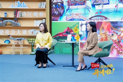 李海燕(左)在“涪江观察开讲啦”公益讲座节目现场