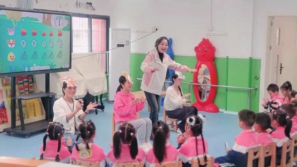 何江燕老师在大班艺术《动物打击乐》展示课上带领小朋友从聆听乐曲猜动物、跟着图谱拍手拍腿,到认识响板、响铃、三角铁等乐器,再到分组合作演奏,孩子们在节奏律动中感受音乐魅力,锻炼协调能力,更在集体演奏里体验合作的快乐。这场充满童趣的打击乐活动,让宝贝们化身“小小音乐家”,在乐器与节奏的碰撞中,收获对音乐的热爱与合作的喜悦!