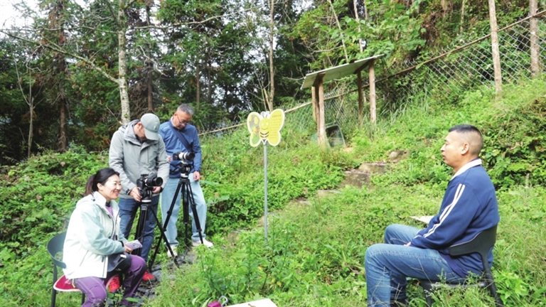 《两山行》栏目组采访关坝村生态巡护员。