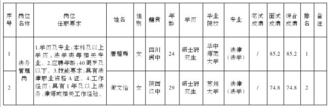 九洲千城置业有限责任公司关于招聘法务管理岗测试成绩的公示