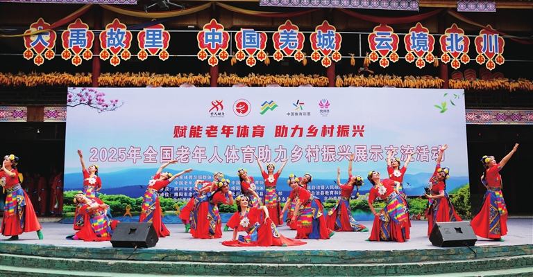 各类赛事活动的举办,更是点燃了老年群体的健身热情。自2011年起,北川每年举办“古斯都”运动会,除了太极拳剑、健身气功、广场舞、乒乓球等常规项目外,还特别设置了羌族推杆、抱蛋等具有民族特色的项目,累计吸引超万人次参与。