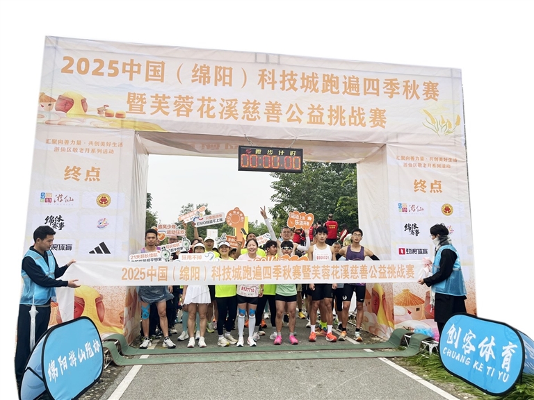 本报讯(李洋 记者 周钰 李媛媛 文/图)10月26日,2025中国(绵阳)科技城跑遍四季秋赛暨芙蓉花溪慈善公益挑战赛在游仙区新桥镇芙蓉花溪畔暖心开跑,活动集结了800余名跑步爱好者,共同参与这场融合运动、健康与慈善的公益盛事。