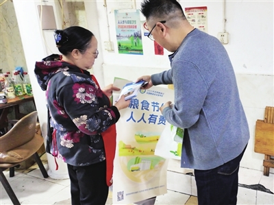 宣传不止于广场,更要走进日常生活的“烟火气”中。工作人员还走进辖区餐饮店,向经营户和消费者发放宣传资料。“作为餐饮行业,要积极倡导勤俭节约。顾客点餐时,我们会提醒他们量力而行、按需点餐,杜绝浪费。”餐饮店负责人王俊说。