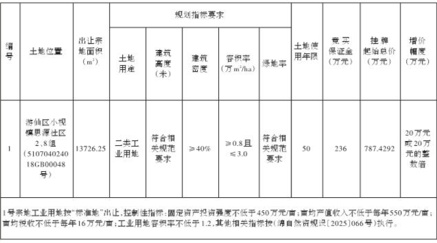 上述宗地均以现状出让,1号宗地其他规划要求详见绵阳市自然资源和规划局《地块规划条件》(绵自然资规设〔2025〕066号)。