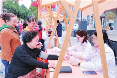 另一边,活动现场设置的“蜀里银龄·乐享美好”展示展销区、“天府有礼”展区、适老体验区,各种特色产品琳琅满目;“温暖孝老区”,绵阳市中心医院、绵阳市中医院的义诊台前排起了长队,一句句叮嘱,传递着医者仁心;一旁的志愿服务点同样忙碌,免费理发等便民服务,让老人们脸上洋溢着幸福的笑容。