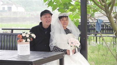10月28日,安州区秀水镇蟠龙村村委会联合区融媒体中心为在村的36对中老年夫妻拍摄金婚银婚纪念照。