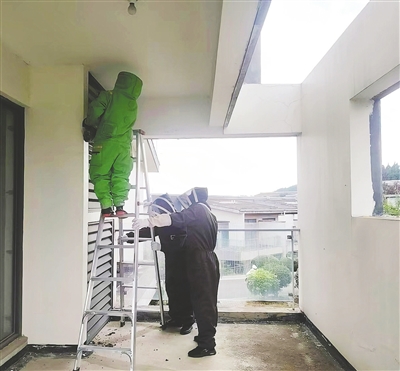 当天下午,物业管家霍萍接到40-1栋业主黎先生的紧急求助,称其花园绿植发现蜂群。霍萍与安保何队长立即赶赴现场,经辨识确认为具有毒性和较强攻击性的毒马蜂。考虑到直接处理风险较高,物业迅速启动应急流程,联系专业“捕蜂专员”刘康宁师傅前来处置。