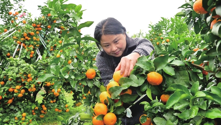 2017年,晴川家庭农场负责人彭晓琼在镇政府的支持下承包了几十亩地发展柑橘产业,果子深受消费者喜爱,晴川家庭农场也获得了“市级农民工返乡创业园”称号。