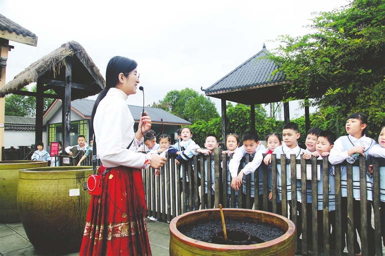 每年春季是研学高峰期,中国酱文化博览园便会迎来诸多学子参观体验特色项目,沉浸式感受酱油酿造乐趣。“中国酱文化博览园年接待游客上万人次,接纳科普参观者15万人次。”中坝口蘑酱油酿造工艺第七代非物质文化传承人杨莉介绍,公司依托博览园开展体验活动,既弘扬了科学精神,又传播了酿造技艺及中国酱文化;后续计划投资2000多万元,新增1万口酱缸,进一步带动当地就业与经济发展,为“工业+文旅”融合注入新动能。