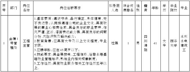 四川长虹物业服务有限责任公司绵阳分公司关于招聘工程主管岗位拟录用人员的公示
