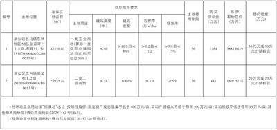 上述宗地均以现状出让,1号宗地其他规划要求详见绵阳市自然资源和规划局《地块规划条件》(绵自然资规设〔2025〕162号);2号宗地其他规划要求详见绵阳市自然资源和规划局《地块规划条件》(绵自然资规设〔2025〕148号)。