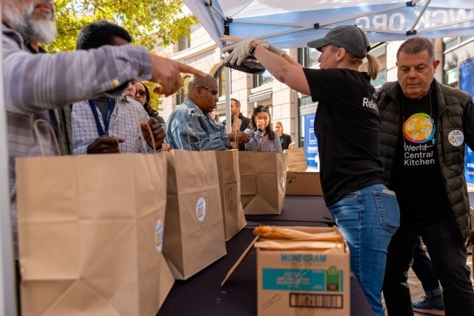 当天活动的主办方是慈善组织“世界中央厨房”。据了解,该组织从10月27日起在华盛顿市区设立多处救济点,截至11月5日早上,已发放超过3.6万份食物。除了华盛顿市中心,他们还在机场、空军基地等地设立救济点。现场工作人员表示,5日当天来领免费午餐的人数明显增加,库存消耗速度明显加快。