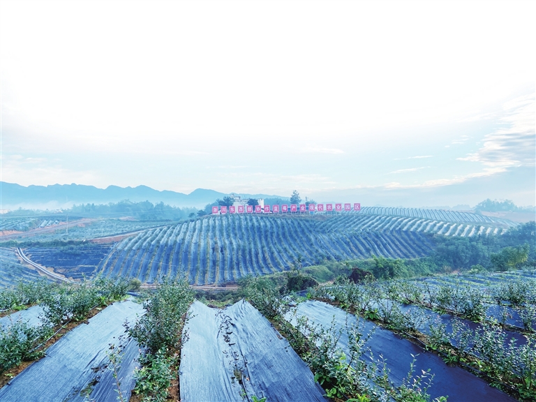 这片3000余亩、栽种50万株“蓝莓1号”的产业园,是浙江省驻绵工作队组织农科专家实地考察筛选的“东苗西种”示范项目,今年鲜果产量超400吨,综合收入4500余万元,还入选第四届全球减贫最佳案例,成为“福田样本”。