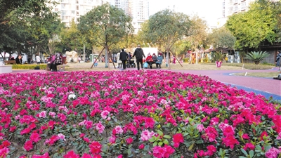 恒昌路口袋公园是该县口袋公园建设的典型代表。该公园总面积约3700平方米,总投资140万元,按照乔灌花草相结合的原则,用丛生多头蓝花楹、大型丛生垂丝海棠等异形乔木,结合组团花境组成观赏性较高的绿化景观,同时铺装草皮、安装汀步、添置休闲座椅,供市民休闲游赏。